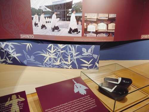 こんなの履いて歩けない!というようないかついデザインのものや、マリー・アントワネットに関連したようなフランス王朝時代のものなど、様々な珍しい靴がずらり。日本の神道にまつわる展示もあります。