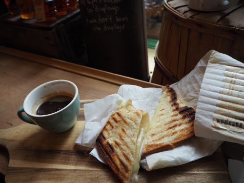 • 写真:jihen2グリルチーズサンドイッチ(7ドル/約585円)とコーヒー(2.85ドル/約238円)