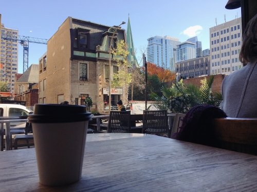 窓際の席からはヨーロピアンな風景が見え、モントリオールらしいひとときを過ごせます。テラス席もあるので、気候の良いシーズンにはぜひ使いたいところ。朝のお出かけ前などに寄り道をするのにおすすめです!