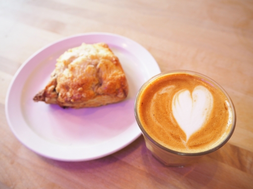 日本ではあまり見かけないフラットホワイトは、エスプレッソもミルクも濃いめ&多めという、カフェラテの濃厚バージョンのようなドリンクです。スコーンなどフードも充実しています。