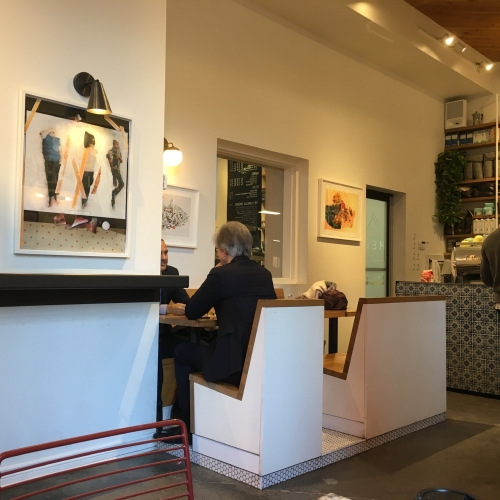 プラトーと隣接するこれまたオシャレなエリア、マイル・エンドという地区にあります。名前のとおりアートに力を入れているカフェで、壁にはその時々で異なるアーティストの作品がディスプレイされています。