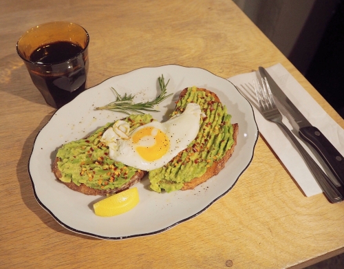 ラテなどのカフェメニューのほか、クロワッサンやサンドイッチなどもあります。おすすめは写真左のアボカドトースト!アボカドをベースに、生ハムやサニーサイドアップ、トマトなどお好みでトッピングできるものです。トーストといっても日本の朝食にイメージされるものとは違い、またビジュアルもとってもかわいいですよね。