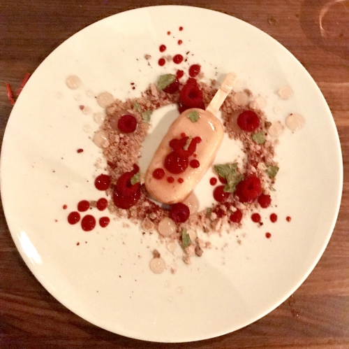 デザートは、パッションフルーツ&ココナッツアイスとピスタチオケーキ。ココナッツボールを割ると、中からパッションフルーツソースとアイスが流れ出す。見た目も味も一流の芸術品。さすがにデザートまで安定して楽しませてくれます。