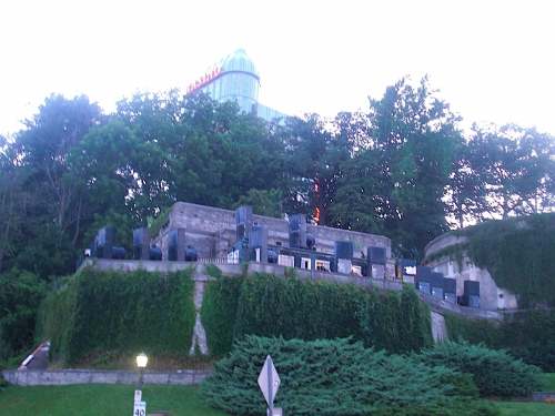 日中、ナイアガラの滝のそばを散策していると、「これはなんだろう?」と思う一角が。物々しい機械がいっぱい並んでいます。でも日が落ちると、その正体がわかります。
