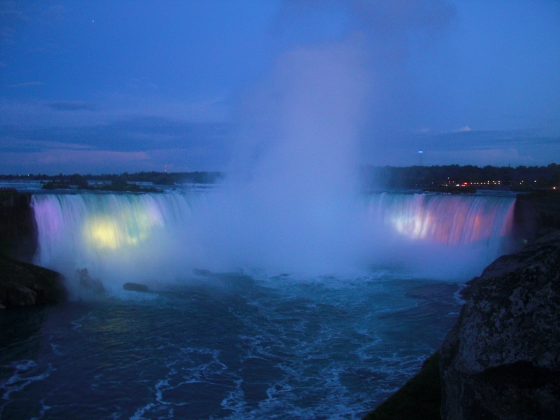 日が落ちて行くにつれ、ナイアガラの滝は、日中とは全く違う雰囲気になって行きます。夕焼けの赤い色がそのまま滝を照らし、見ているだけでうっとり・・・。