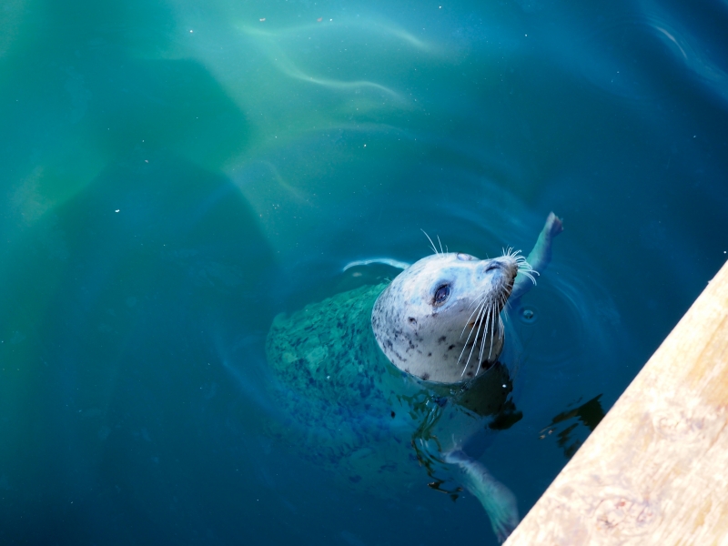 アザラシが出現するポイントの真後ろのお店The Fish Store & Moreで餌を買い、あげることができます。顔だけ出して催促してくる姿がとても可愛らしいアザラシ。筆者はよくFisherman's Wharfに足を運ぶのですが、冬場はあまり見かけないアザラシ、夏は高確率で発見できます!