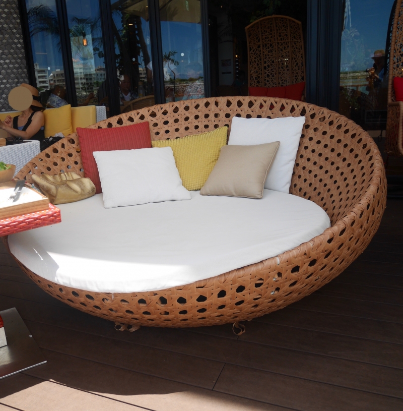 アジアンテイストで高級感のあるインテリアの店内。テラスには、こんな素敵なソファーもあります。空いていたらラッキーです♪