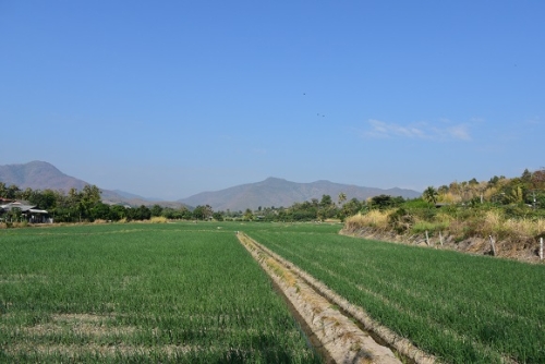 メーワン地区を進んでいくと、一面に広がる畑や、田んぼが目に飛び込んできます。メーワン地区では、玉ねぎ、トウモロコシ、ジャガイモなどが作られています。畑での作業のほとんどは手作業。多くの農夫たちが集まって作業をしている様子を目にすることもできます。