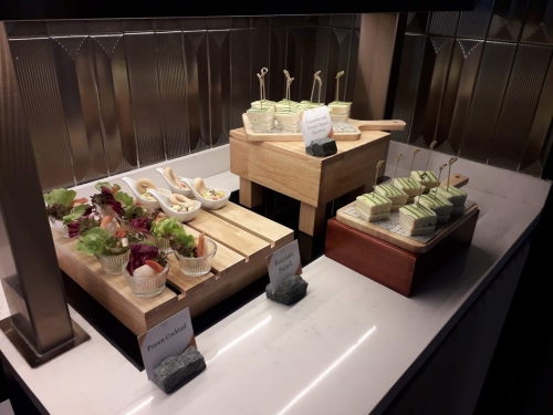 中央のカウンターには、11:00〜22:00まで常時ソフトドリンクとスナックが用意されています。また、7:00〜10:30は朝食、14:30〜16:00にはアフタヌーンティーサービスが提供されます。