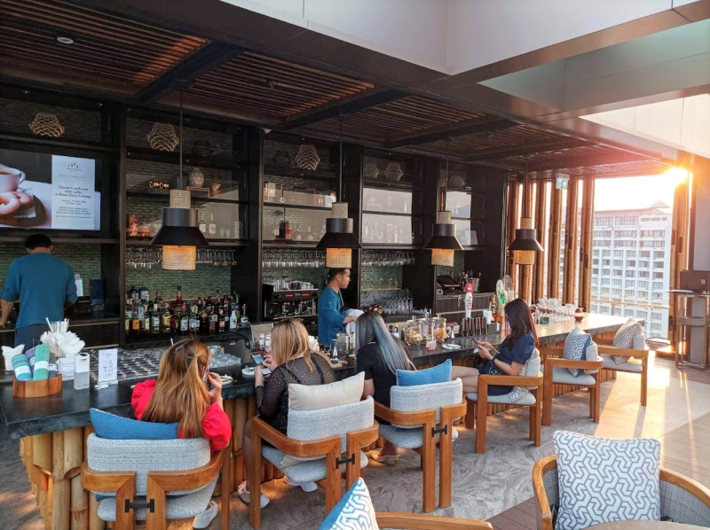 360℃見渡せる、開放的なバーで、西側にはドイステープに沈む夕陽を眺めることができます。