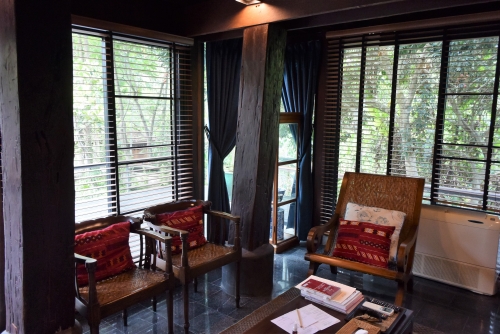タイの米蔵は高床式で、1階部分は柱のみなのですが、1階部分にはガラスが張られ、雰囲気を残しつつも居心地の良いリビングルームに改装されています。