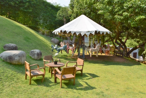木製のメリーゴーランドや、ブランコもあり、子どもたちも楽しそうです。