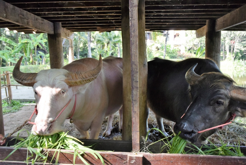 そして庭園の奥には本物の水牛がいます!この水牛たちは、夕方になるとホテル内を散歩して、ゲストをおもてなしします。立派なホテルスタッフの一員ですね。
