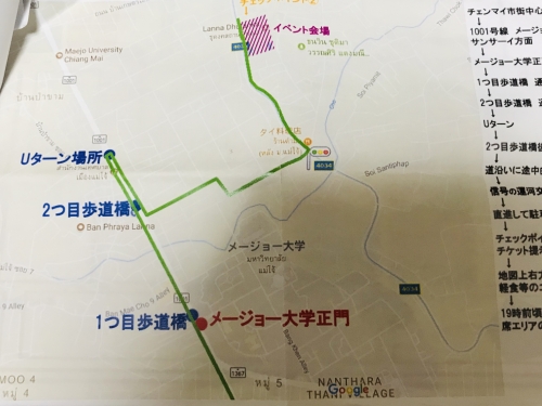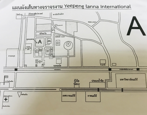 会場への入口は大学の正門から少し離れた場所にあるため、旅行会社からチケットと一緒に渡される案内の地図を運転手さんに見せましょう(現地ツアーの場合、日本語とタイ語の2パターンの地図をもらう事が多いです)。