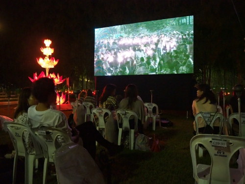 そして、ついにコムローイを飛ばす準備です。会場では各国の言葉で、説明が流れます(日本語の説明もあります)。