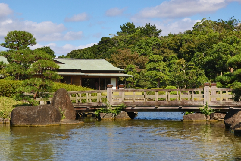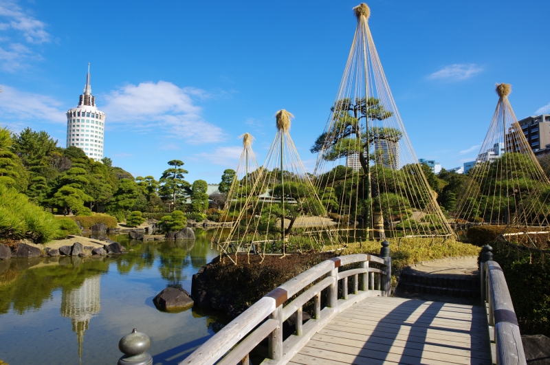 また園内には、数寄屋造りの茶室・松籟亭(しょうらいてい)があり、中では抹茶と和菓子も味わえます。高層ビルに囲まれているとは思えないほどゆったりとした時間が過ごせるので、散策しつつ訪れて、優雅に暇つぶしをするのも良いですね。