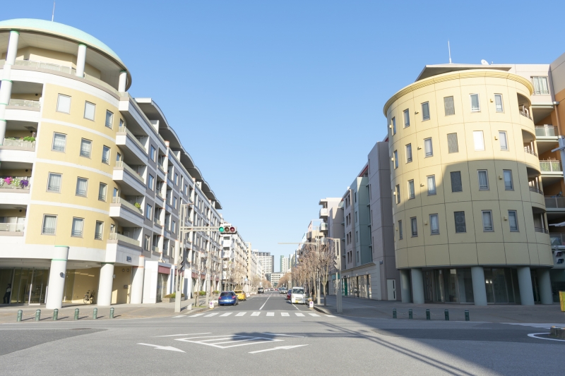 美浜区打瀬の集合住宅エリア「幕張ベイタウン」。幕張メッセからは少し距離がありますが、このエリアは電線が地中化されているため、道路に電柱がなく、美しい街並みとして知られています。また、欧米でよく見られる街路沿いに住宅を配置する沿道型建築を採用しているため、まるで日本ではないような雰囲気が広がる、街歩きを楽しめるエリアでもあります。