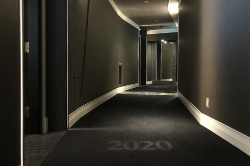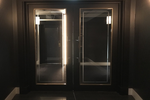 エレベータホールから客室のあるフロアには扉を開けて入りますが、扉を開けるとシックで落ち着いた雰囲気に変わります。また、部屋の前の廊下の足元には部屋番号が照らし出されるという演出があります。