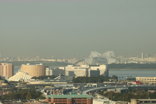 具体的には、舞浜方面へと続く大きな一本道とJR京葉線、ディズニーシーのプロメテウス火山やディズニーランドのシンデレラ城、スペースマウンテン、東京湾のゲートブリッジや海ほたる、風の塔などを見る事ができます。