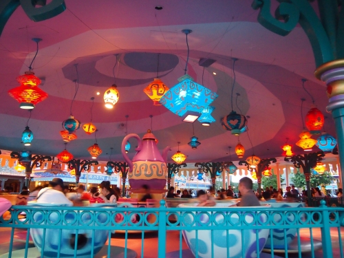 バースデーシールを身につけたら、ファンタジーランドにあるアトラクション「アリスのティーパーティー」に乗りましょう。ティーカップに乗ってくるくると回る、お子様でも楽しめるアトラクションです。