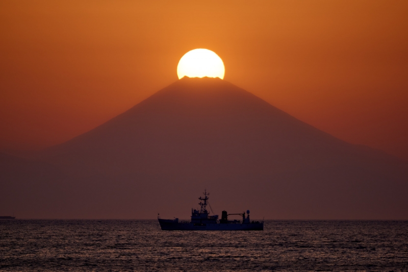 北条海岸で素晴らしいのが、上の写真にもある通り、太陽の沈む場所と富士山の頂上が重なる奇跡の絶景「ダイヤモンド富士」を見られることです!