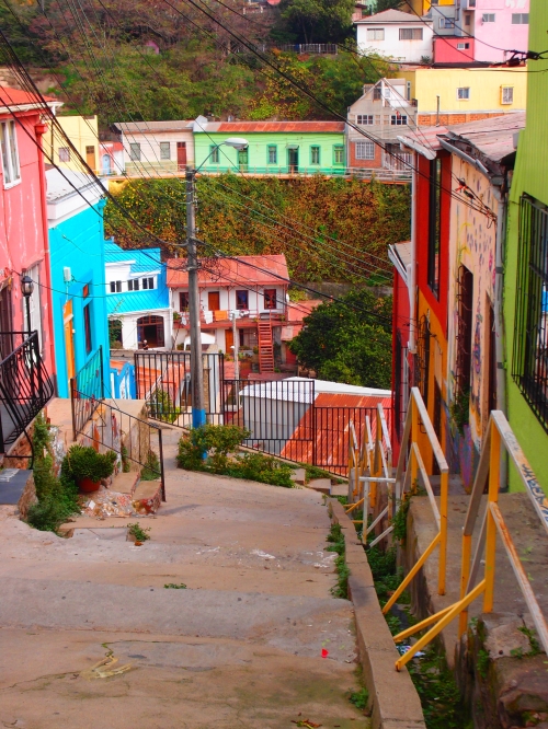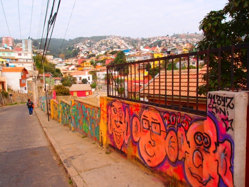 バルパライソは現地の言葉で「天国の谷」という意味です。天国の谷(バル=谷、パライソ=天国)。その名の通り、少しの平地以外は切り立った丘が多くの谷を形成しています。