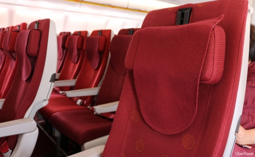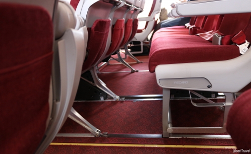 新しくはないですが綺麗に保たれている印象です。筆者はエコノミークラスを利用しましたが、シートは布張りでソフトで、リクライニングも他の飛行機と同じく利用できます。足元は、前のシートから自分の座席まで20センチ程確保されているので、LCCよりも広い印象で充分リラックスできると思います。