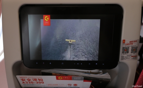 タッチパネルのパーソナルモニターが1席に1つ付いており、フライト中に映画や音楽、ゲームを楽しむことができます。中国の映画や音楽が中心ではありますが、筆者が搭乗した時には、ドラえもんの映画や、浜崎あゆみさんの音楽が入っていました。ただし、イヤフォンは配られませんので、ご自身で用意されると良いと思います。パーソナルモニターにUSBのポートが付いていますので、スマートフォンなどの充電も可能です。