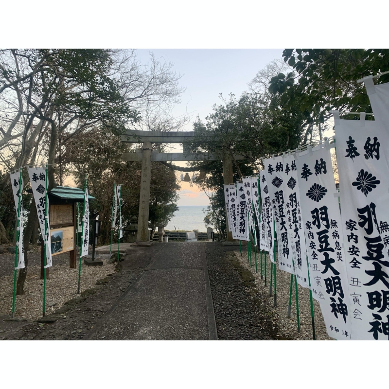 知多半島随一の日の出スポットとして有名な師崎にある羽豆神社(はずじんじゃ)。先述した羽豆岬展望台のすぐ近くにあります。境内から伊勢湾と三河湾を一望できる絶景神社として有名です。