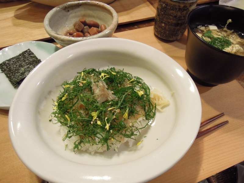 ランチのおすすめは、「常滑ちらし」。こちらは旬の地魚を使ったてこね寿司に、汁物、煮物、デザートがセットになったものです。
