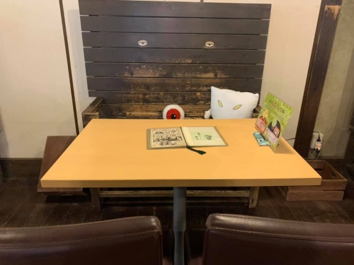 メニューはもちろんのこと、椅子や机をはじめ、店内の隅々まで鬼太郎ワールドに包まれていて、どっぷりとその世界観に浸れます。