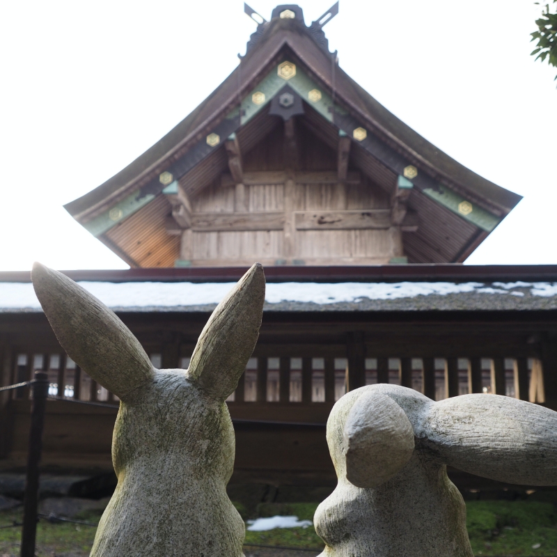 また因幡の素兎(いなばのしろうさぎ)にちなんで境内の各所にうさぎの像が佇んでいるので、あちこちにいるうさぎ探しも楽しんでみてください。
