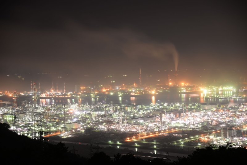 鷲羽山公園線(旧鷲羽山スカイライン)上にある、水島コンビナートを見下せる展望スポットです。水島コンビナートは総面積約2,500万㎡と国内有数の規模を誇る工業地帯で、特に夜通し稼働している工場の明かりが作り出す夜景は圧巻!夜のドライブデートにもおすすめの展望スポットです。