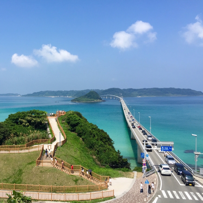 2000年に開通した、山口県下関市と角島を結ぶ「角島大橋」。橋の長さは全長1,780mと日本第2位を誇り、無料で通行できます。