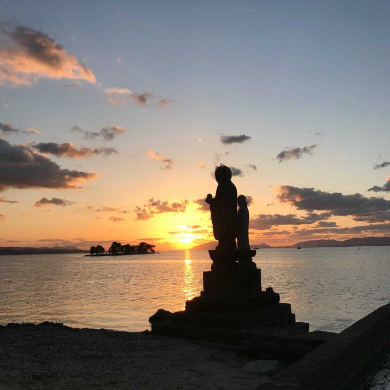 シジミの漁獲量日本一で知られる宍道湖は、周囲45kmと国内で7番目の大きさを有する湖。夕日の絶景スポットとして有名で、”日本の夕日百選”にも選ばれています。とくに湖の東側からの夕日が美しく、全面ガラス張りとなっている「島根県立美術館」のロビーからはゆっくりと鑑賞できます。そのほか遊覧船に乗って水面から眺める夕日も格別です。