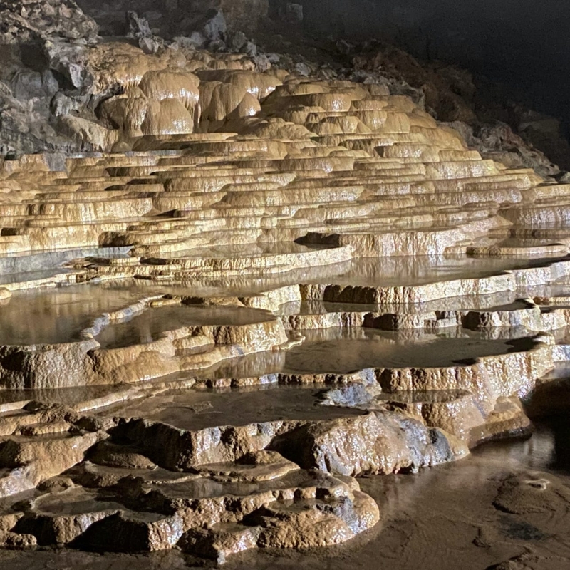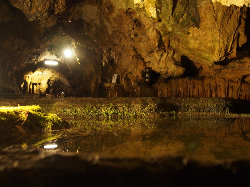 秋芳洞といえば、お皿をしきつめたような「百枚皿」が有名。段丘を流れる水の石灰分が、長い年月をかけて波紋の形にかたまったものです。実際には500枚以上あると言われ、世界でも類を見ないと言われる規模の大きなもの。非日常の神秘的な空間で、ぜひパワーチャージしてみてくださいね。