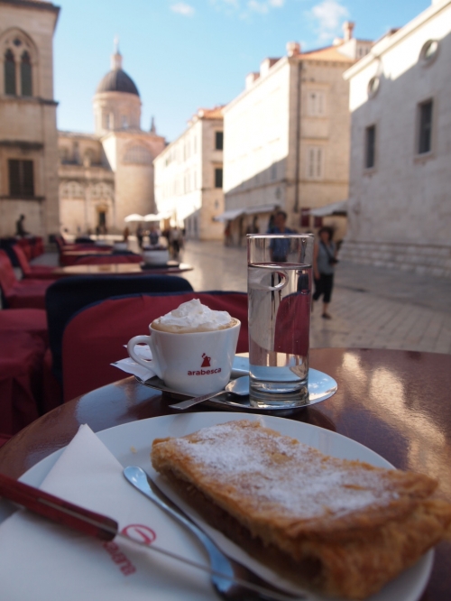 カフェやレストランも街の至るところにあり、歴史的建造物の中で街を眺めながらほっと一息つくのも旅の醍醐味です。隣国ボスニア・ヘルツェゴビナのボスニアン・コーヒーや、イタリアのパスタやニョッキ、ドブロブニクの果樹園で採れたリンゴを使ったアップルタルトなどは、日本人の口にも合います。