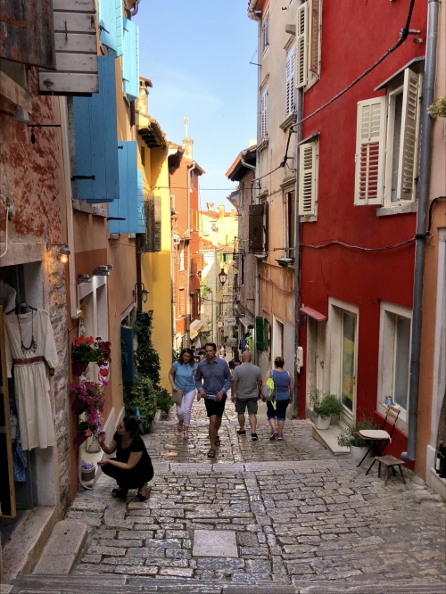 かつてヴェネツィア共和国の支配を受けていたロヴィニュでは、街並みやカラフルな色使いの建物など、多くの場所でその支配の名残を目にします。その街の雰囲気は、クロアチアの中でも少し独特。また中世の街並みがそのまま残ったような旧市街はとても小さく、2〜3時間あれば一通りの観光を終えることができます。