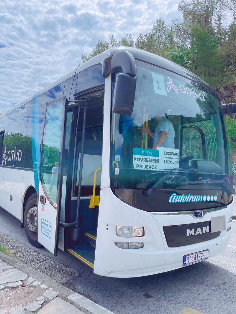 クルカ国立公園は、車で行けるのは入口まで、入口から散策のスタート地点まで急な坂道が続きます。スタート地点まで少し距離があるので歩きに自信がない方は、有料のバスもあるので利用してみてください。このバスは、チケット売り場前から出ているので迷うことはありません。また、公園内は滝や植物などを見ることができるのはもちろんのこと、プリトヴィツェ湖群国立公園よりも、比較的歩きやすく、お子さん連れや年配の方にもおすすめです。