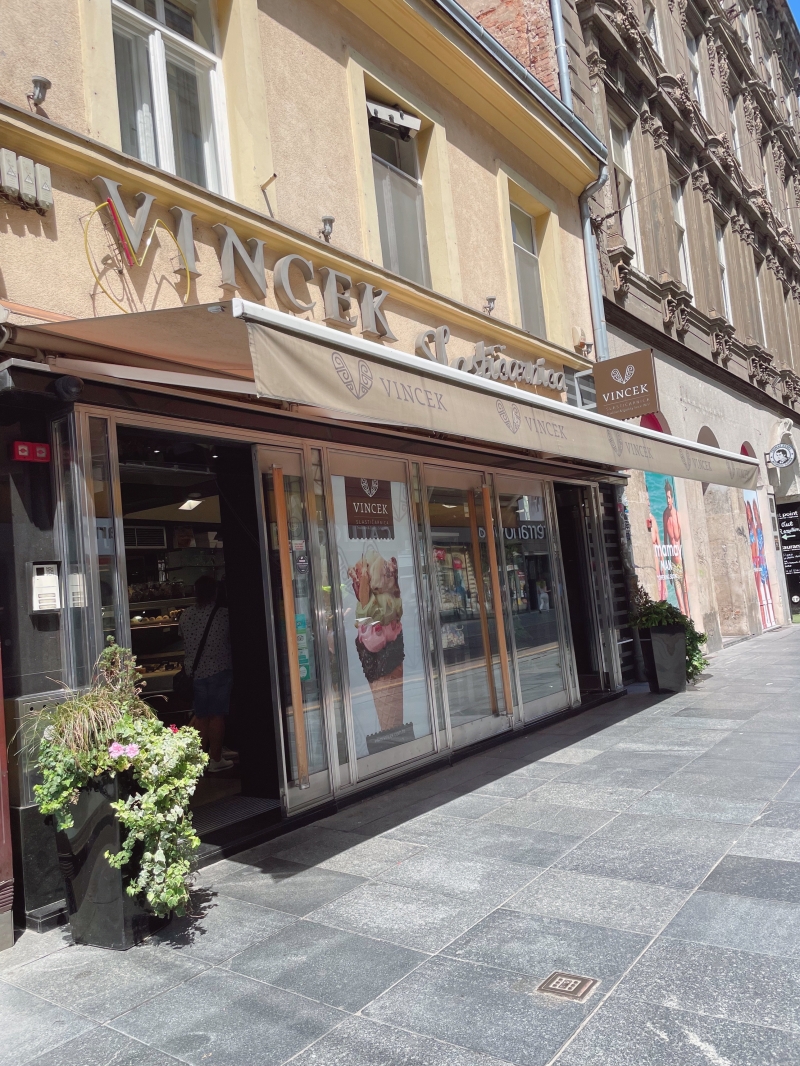 イェラチッチ広場から徒歩約5分の場所にある「ヴィンツェク」は、ザグレブに8店舗ある人気の洋菓子店。今回紹介するイリツァ通り店は、イェラチッチ広場からも近く、観光の一休みに立ち寄るにも最適なお店です。