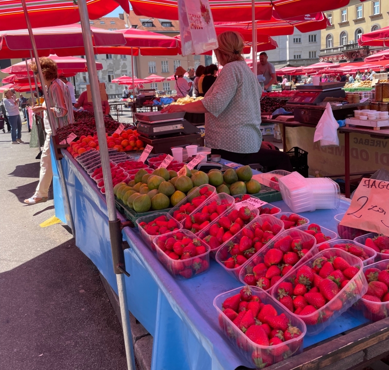 イェラチッチ広場から徒歩約2分の場所にある「ドラツ市場」は、ザグレブの胃袋。新鮮な野菜やフルーツが買えるのはもちろん、室内ではお魚やお肉、お酒の販売もあり見てまわるだけでも楽しめます。