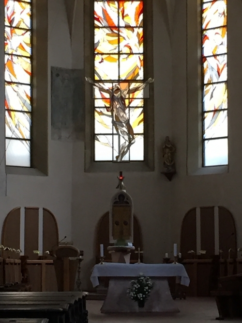 簡素なデザインのフランシスコ会の教会。1451~1468年に建てられました。キリストがガラスで出来ている、なんとも美しい教会です。