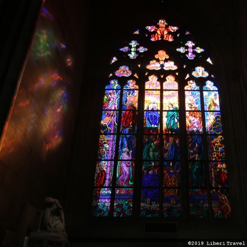 プラハ城の内側に位置する聖ヴィート大聖堂は、絵葉書などに必ず使われる、プラハの象徴とも言える大聖堂。外観はもちろん、迫力満点のステンドグラスは必見です。特に、午前中の光が差し込む時間帯は、ステンドグラスのカラフルさがより一層際立ち写真映えします。