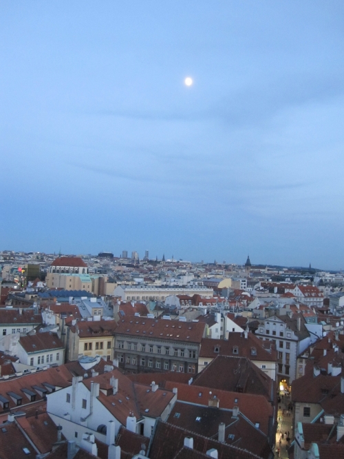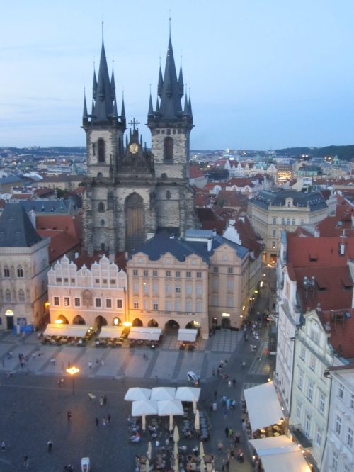塔の上は展望台になっており、旧市街広場とプラハの街並みを一望することができます。日が長いヨーロッパの夏は、21時頃でもまだこんなに明るいですが、昼間とは違った雰囲気を楽しめます。