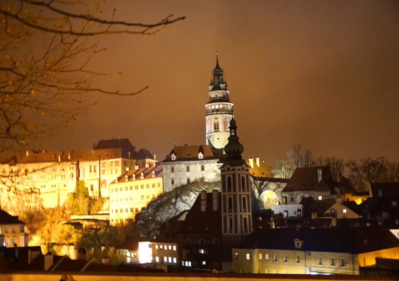 ホテル ルゼ(Hotel Ruze)を出てすぐの広場から、チェスキークルムロフの街並み全体が見わたせます。昼間の景色と夜景では、雰囲気も変わりますので、出来ればどちらも見ていただきたいです。