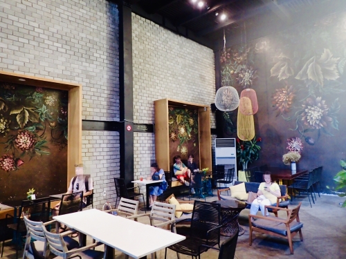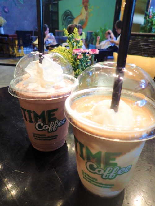 壁も店内の内装もおしゃれなので、インスタ映えもばっちり。右上の写真のドリンクはチョコレート、ココナッツコーヒーで、それぞれ55,000VND(約275円)です。