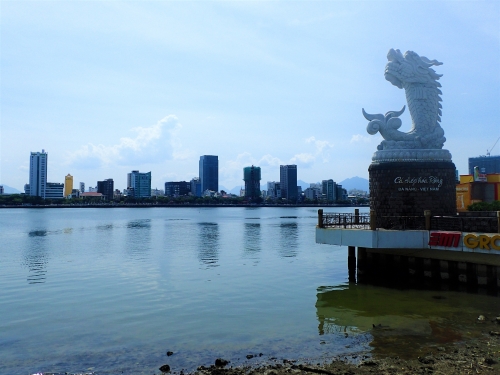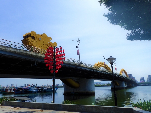 ドラゴンブリッジ(ロン橋)のドラゴンの顔の近くにあるのが、中国の故事をもとにしたというドラゴン像「カーチェップ・ホア・ロン」。