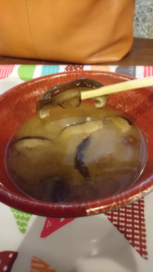 お店の前にある大きな看板や入り口前の巨大お椀など、その存在を気にせずにはいられない名物「日本一売れているきのこ汁」!