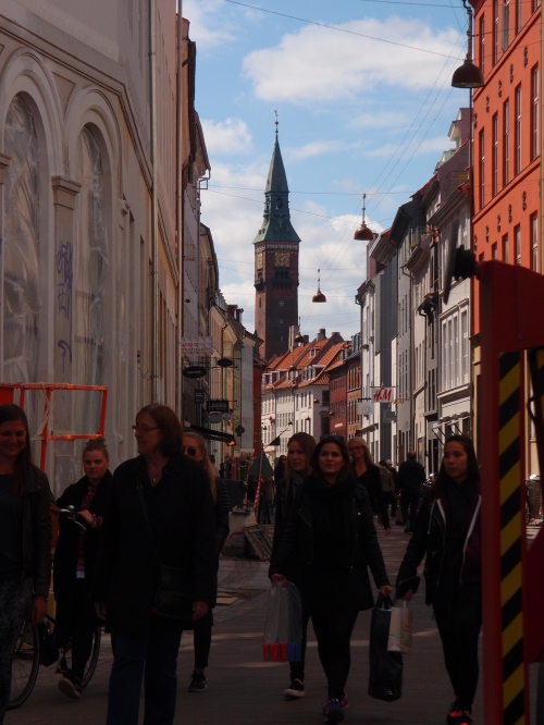 ローゼンボー離宮を後にして南へ向かうと、ストロイエとよばれるショッピングストリートに入ります。ここでは、アートセンターの尖塔を見ることができます。空に向かってそびえる青銅の装飾が美しいです。