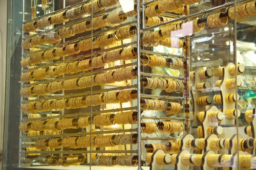 一歩足を踏み入れるとそこは、目がくらむほどの眩い世界。地元の人も真剣に品定めしている姿が見られます。ゴールド・スークで販売される金の品質は政府によって厳しく管理されているので、粗悪なものはありません。その分お値段も張るので、よ~く吟味して。